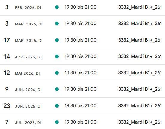 Kein Kurs z.Z. im Bereich Französisch. Private Deutschkurse (auf die französische Seite) und Nachhilfe werden nur über uns direkt gebucht.
