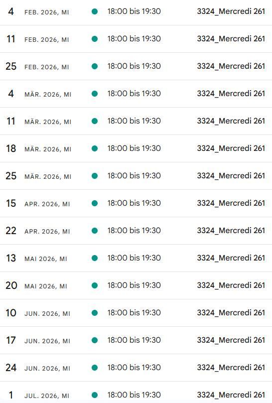 15 x Mittwoch, ab dem 04.02.2026, 18:00-19:30 Uhr